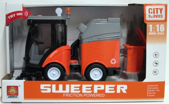 City Service lakaisukone valmiina palvelukseen! Koneessa ääni- ja valotoimintoja. Koneen pituus on noin 18cm. Kokeiluparistot (3 x LR44) sisältyvät pakkaukseen. Ikäsuositus +3v.