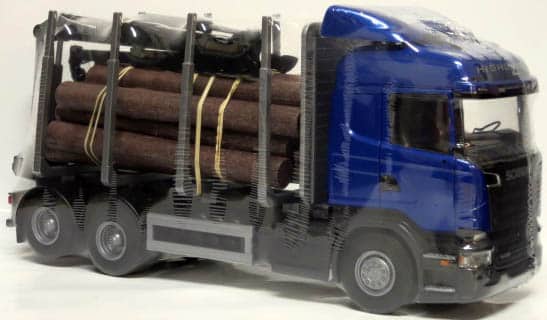 Upea Scanian tukkirekka, sinisellä nupilla, sisältää tukkikouran ja 15 irtotukkia. Valmistettu Suomessa!