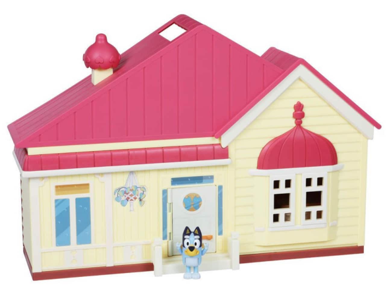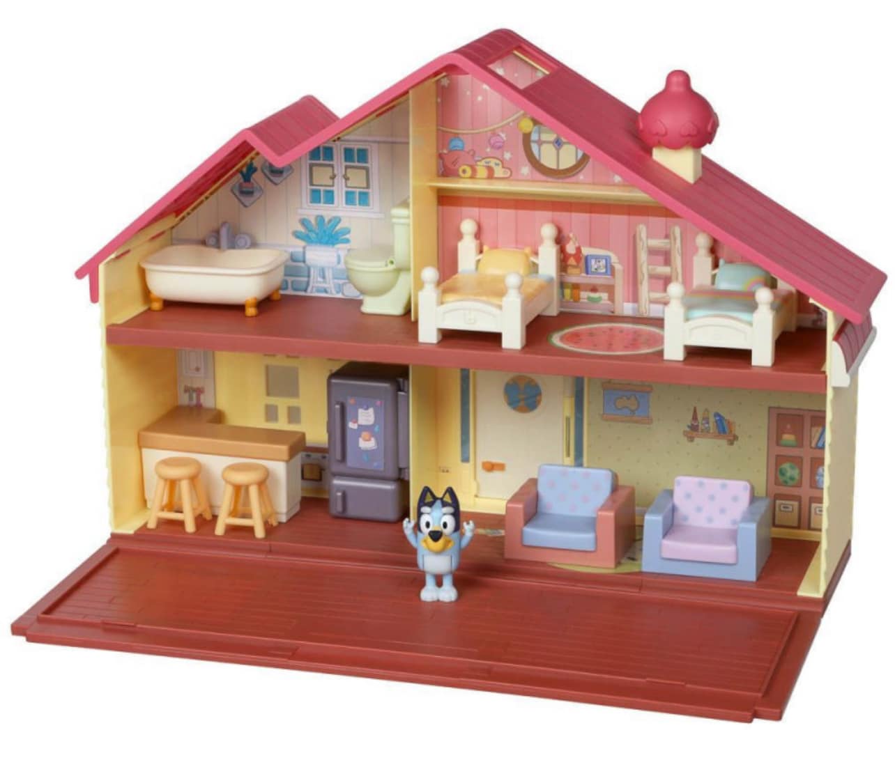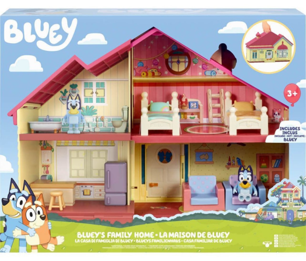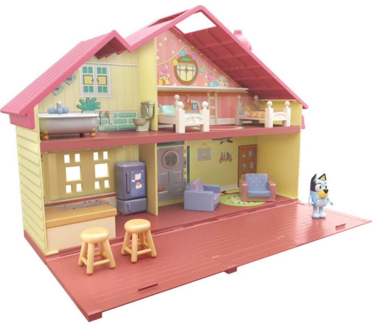 Bluey Family Home talo on täydellinen koti Blueylle ja perheelle!Bluye Talo on suuri ja kalustettu, ja siinä on monia ominaisuuksia! Sisältää talon, yhden Bluey hahmon ja huonekaluja.