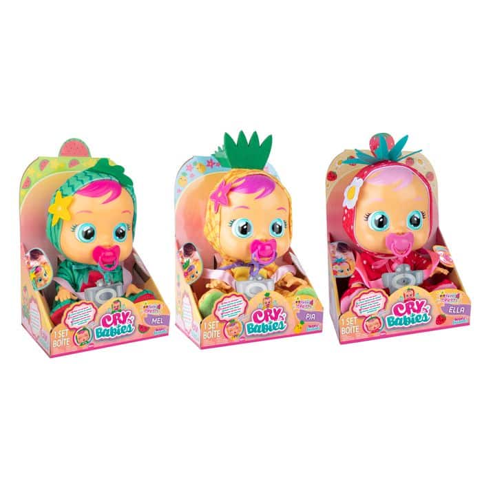 Ihanat Cry Babies Tutti Frutti -nuket tuoksuvat herkullisilta hedelmiltä söpöissä pyjamoissaan. Jos nuken tutti tippuu, se alkaa itkeä oikeita kyyneliä ja itkee, kunnes rauhoitat häntä. Cry Babies Pia tuoksuu ananakselta. Nuken koko n. 25cm. Cry babies Tutti frutti -nukkeja on kolme erilaista, kerää kaikki!