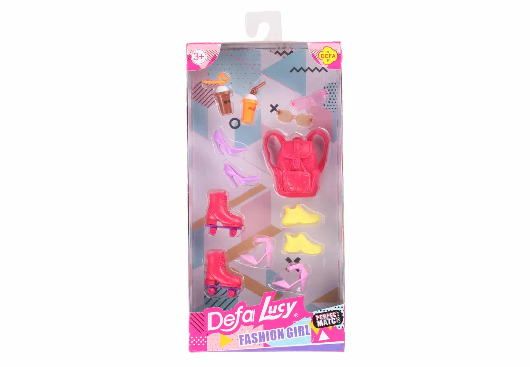 Defa Lucy muotinuken asustesetti, jossa useita tarvikkeita nukeille. Ikäsuositus +3v.