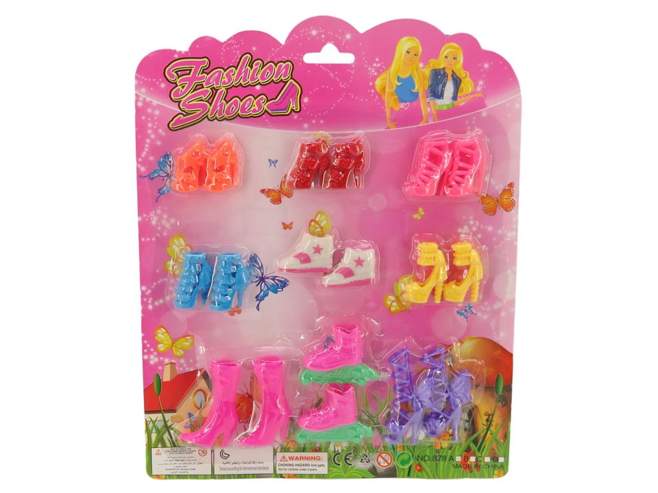 Muotinukelle joka asuun ja tilanteeseen sopivat kengät! Runsas setti sisältää 8 paria erilaisia kenkiä sekä rullaluistimet.
