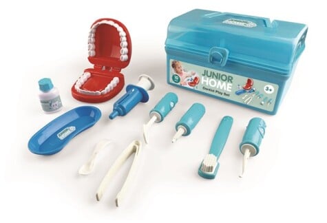 Junior Home hammaslääkäri- leikkisetti sisältää monenlaisia hammaslääkärin välineitä sekä mallihampaat, jolla voit näyttää kuinka hampaidenpesu tapahtuu! Kaikki tarpeellinen oman leikki-vastaanoton avaamiseen. Kaikki säilyy kätevästi mukana tulevassa salkussa, jossa kirkas kansi, jotta sisällön voi nähdä. Salkun koko 22 x 13 cm.