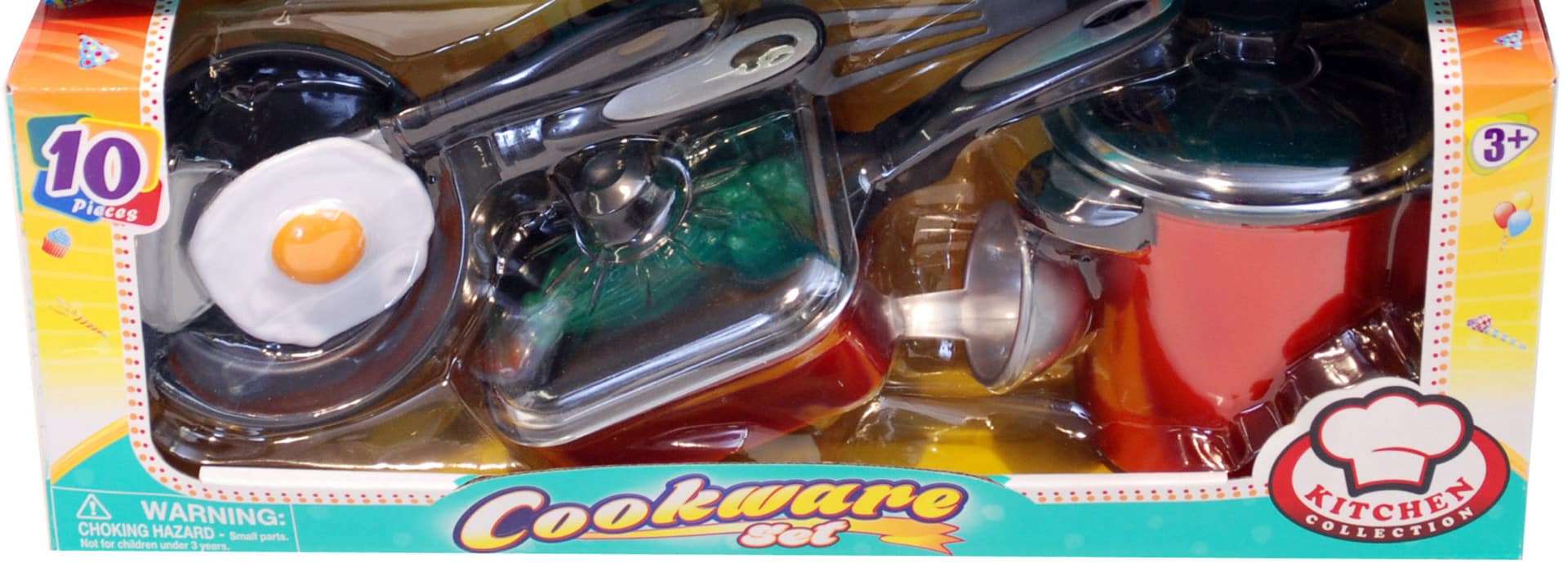 10 osainen keittiösetti sisältää mm. kattilan ja paistinpannun sekä muita tarvikkeita. Ikäsuositus +3v.