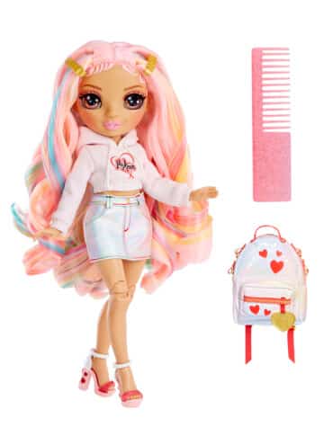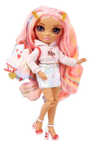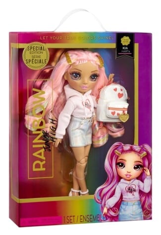 Rainbow High Junior Kia esiteininukke, jolla upea yksityiskohtainen asu. Rainbow High Junior Muotinuken koko n. 22cm.
