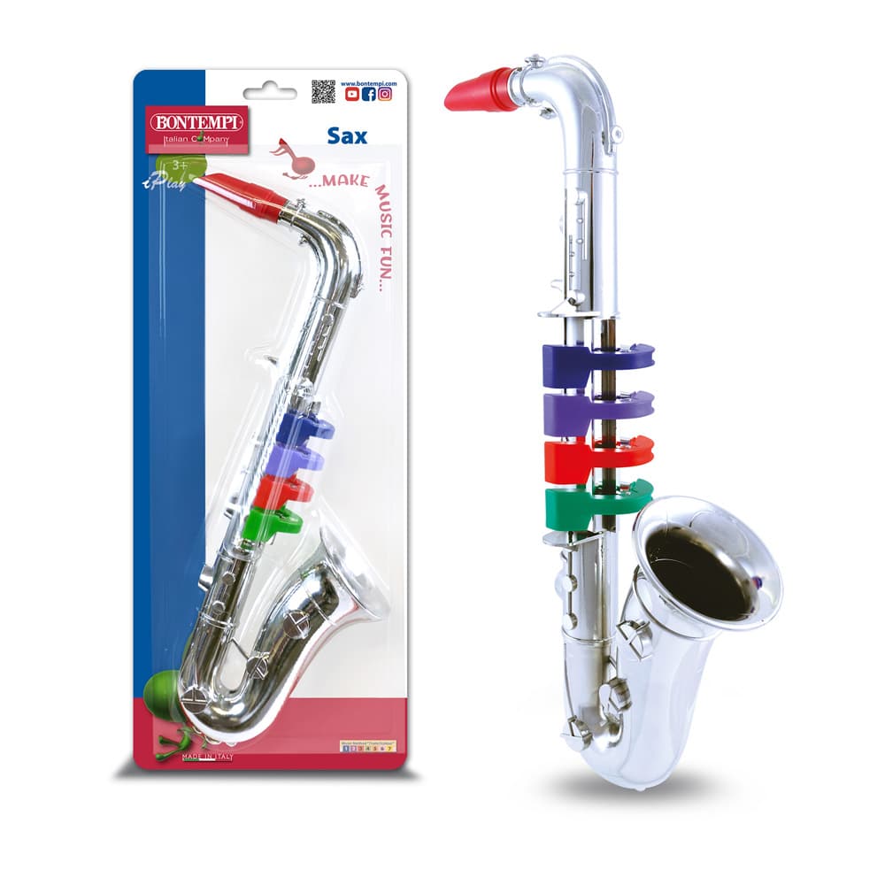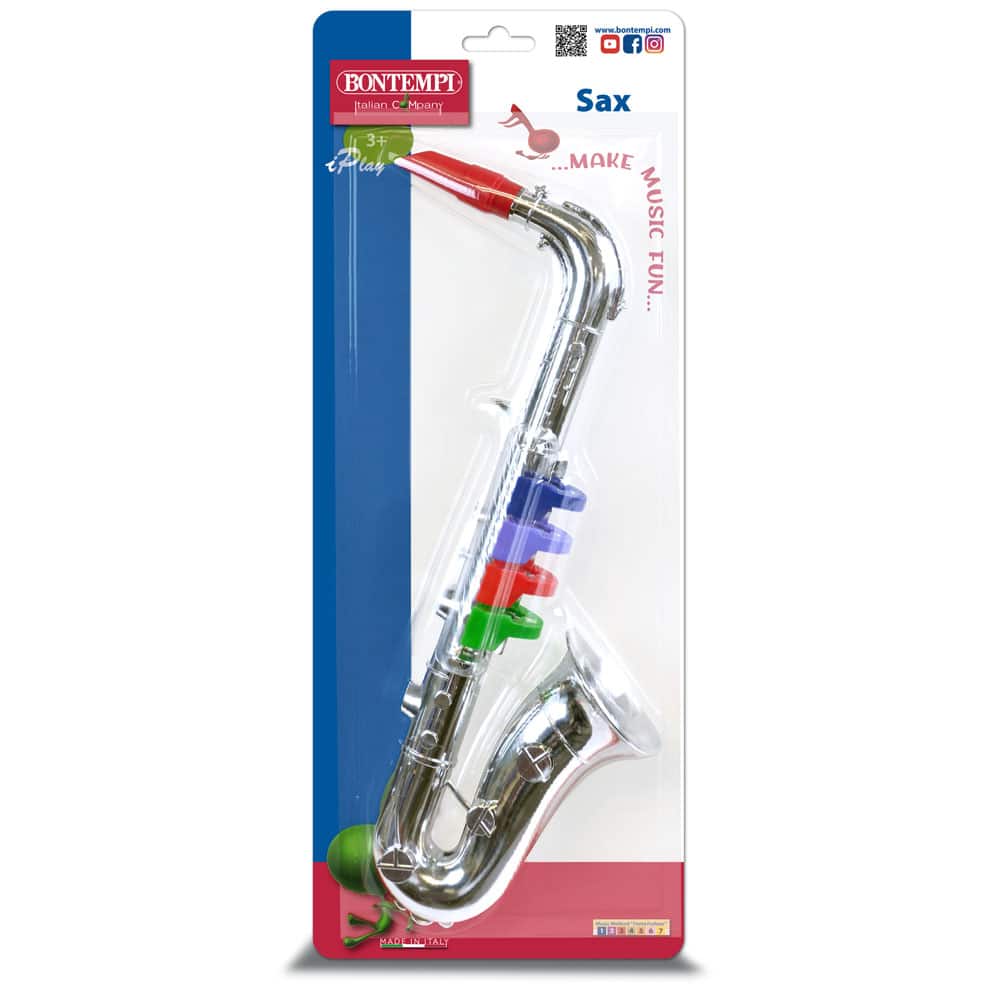 Bontempi Saksofoni, jonka pituus on noin 37,5 cm.
