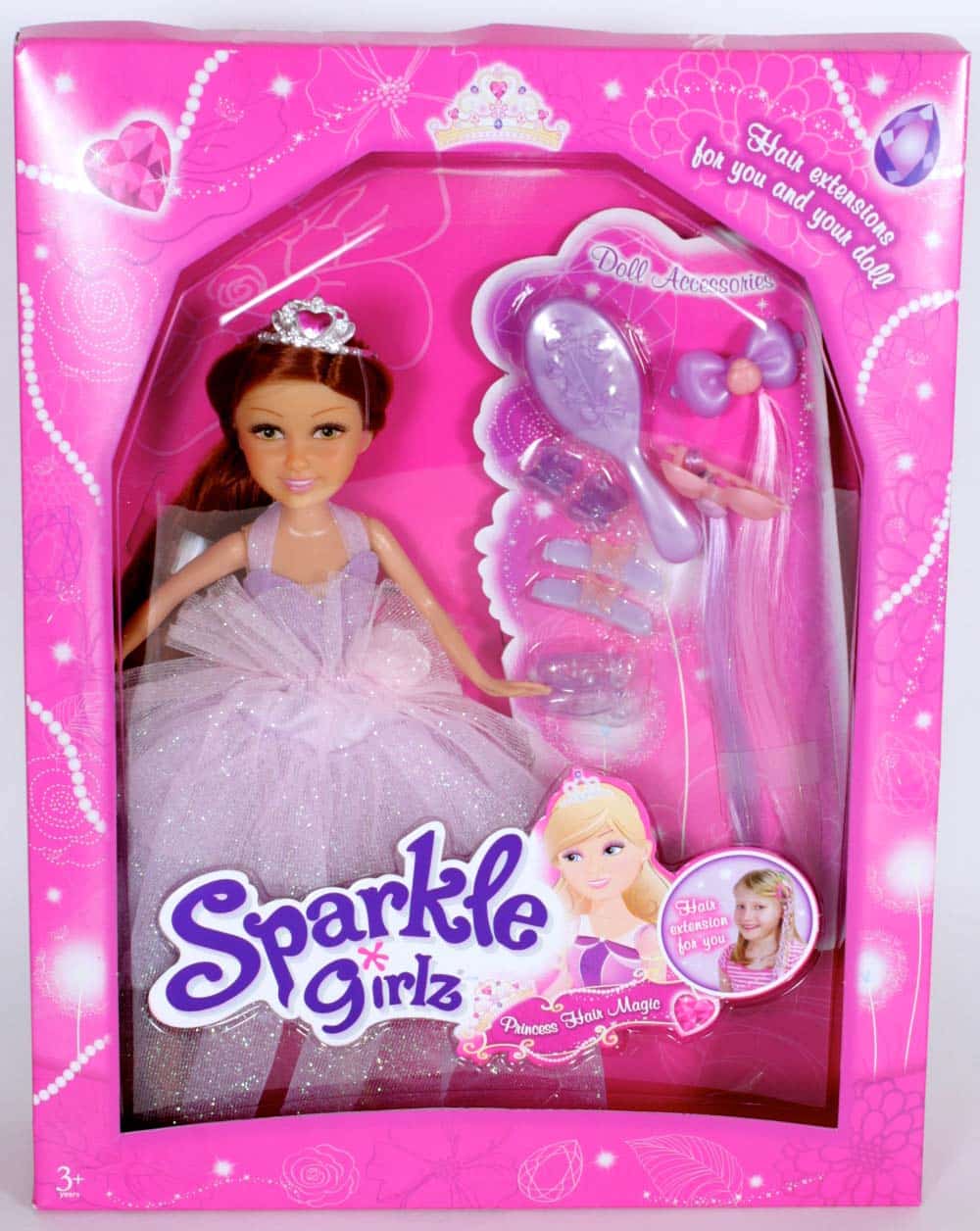 Sparkle Girlz Hair Magic Prinsessanukke. Taianomainen hiusleikki voi alkaa. Tee nukelle ihana kampaus tai kiinnitä hiuspidennys omiin hiuksiisi. Pakkaus sisältää pitkähiuksisen prinsessanuken, hiuspinnejä, harjan ja kaksi hiuspidennystä.