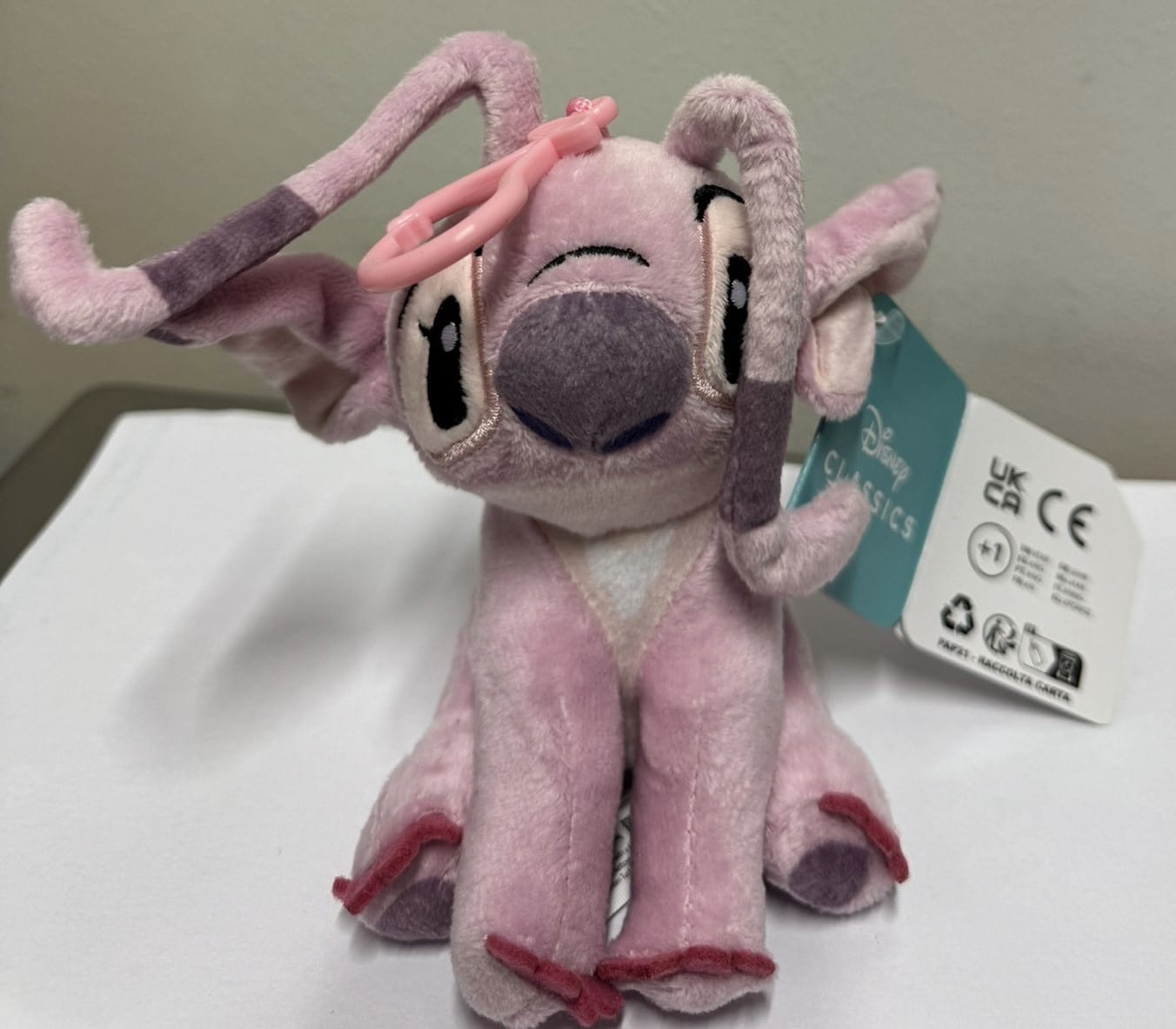Suloinen Disney Stitch & Friends Angel pikkupehmo laukkukoruna. Muovinen klipsi.
