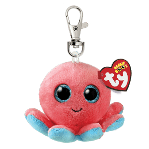 Suloinen TY pehmo Sheldon mustekala laukkukoruna. Metallinen klipsi. Pehmon koko n. 8cm.