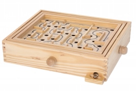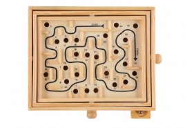 Puinen labyrintti klassikkopeli, missä tarkoituksena kuljettaa kuula maaliin pudottamatta sitä. Pelin koko n. 30x25cm.