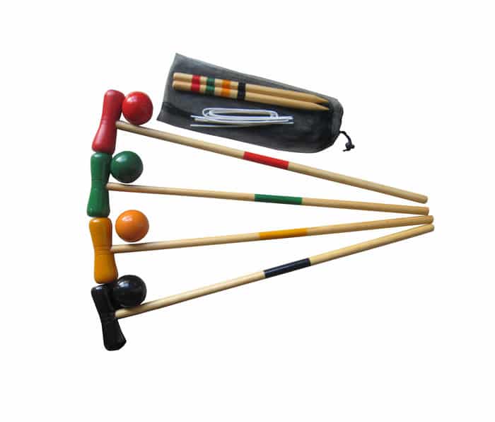 Kroketti on suosittu kesäpeli. Setti sisältää mailat ja pallot neljälle pelaajalle sekä portit ja pelikepit. Ikäsuositus yli 4-vuotiaille.