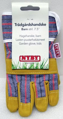 Pikku-työmiehen käsineet. Kämmenosassa keinonahkaa, jotka auttavat esim. vasaraan tarttumista. Käsineet ovat yhden koon. Käsineen pituus keskisormen päästä varsiresoriin on noin 19,5cm. Ikäsuositus +10kk.