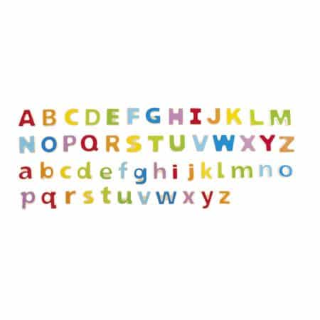 Hape Magneettiset aakkoset, puusta valmistetut magneettiset isot ja pienet kirjaimet sopivat monenlaisiin leikkeihin. Isojen kirjainten korkeus 5 cm. Kirjaimet Å, Ä ja Ö puuttuvat. Yhteensä 52 osaa. Ikäsuositus +3 v.