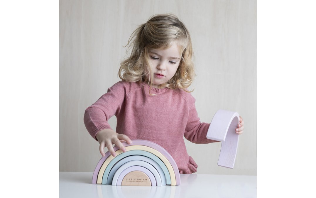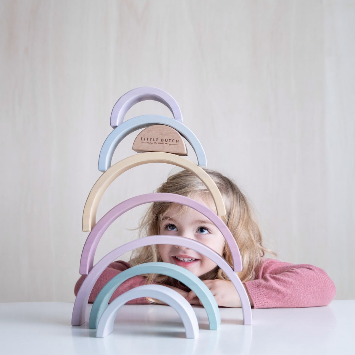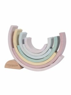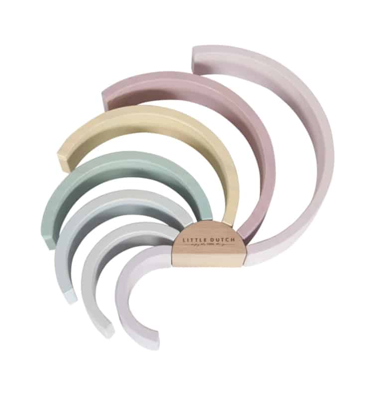 Upea Little Dutch sarjan puinen sateenkaari. Sateenkaaren palasia voi pinota, rakentaa ja tehdä erillaisia muotoja.