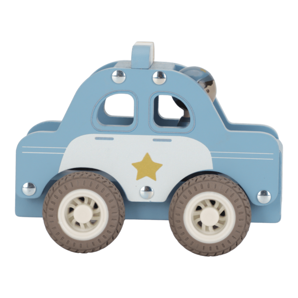 Hieno Little Dutch Puinen poliisiauto hahmolla! Puinen poliisiauto perheen pienemmille! Hahmon voi laittaa auton kyytiin.