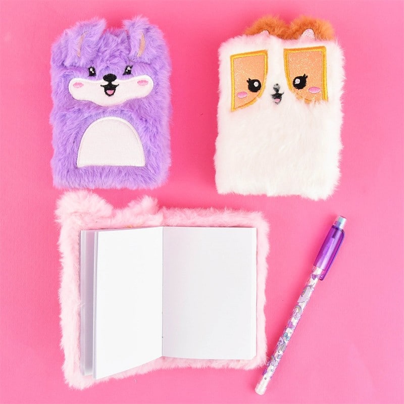 Ihanan pörröiset pehmo päiväkirja. Päiväkirja on A7-kokoinen(11,5cm)