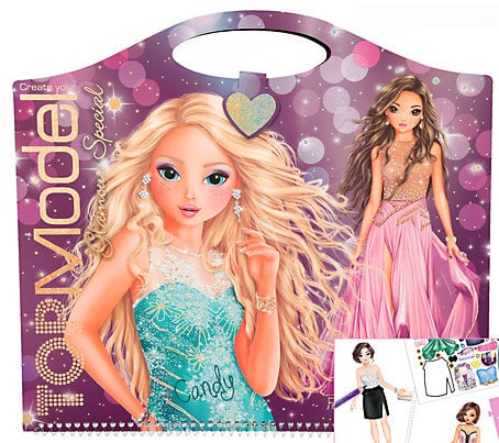 Glamour Special -kansio sisältää sivuja, joihin voit suunnitella juhlapukuja. Kansiossa on mukana myös tarroja, vaatesabluunoita sekä kuviopaperia. Ikäsuositus +6v.