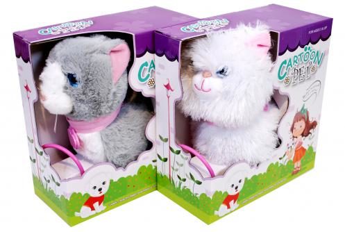 Kävelevä söpö valkoinen Cartoon Pet kissa on perheen uusi lemmikki! Ihastuttava lemmikki kissa kävelee, heiluttaa päätään ja pitää ihanaa ääntä. Kissan koko on 24cm.