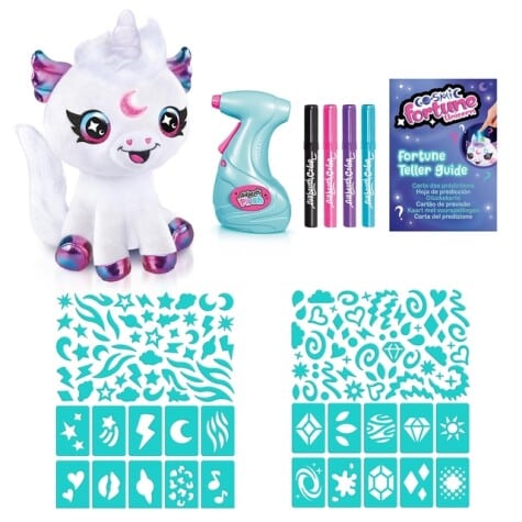 Koristele pehmohahmo mukana tulevilla Airbrush tusseilla. Pehmon voi pestä ja koristella uudestaan. Sisältää noin 20cm pehmon, Airbrush laitteen, tusseja ja sabluunoita. Airbrush Cosmic Yksisarvisen koko 30cm.