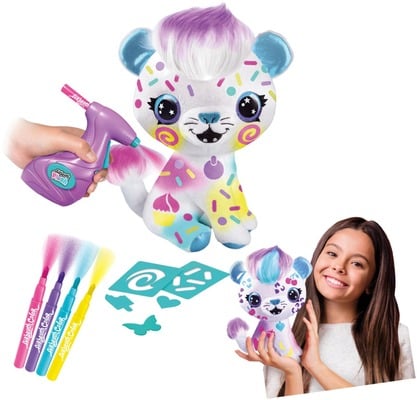 Koristele Airbrush Plush kissa pehmo mukana tulevilla Airbrush laitteella ja tusseilla. Pehmon voi pestä ja koristella uudestaan. Mukana Airbrush laite, 4 eriväristä tussia ja paljon erilaisia sabluunoita.