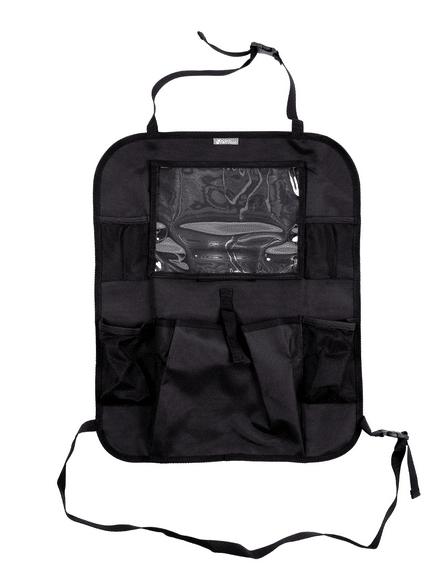 Auton takaistuimen lokerikko tablettitelineellä, suojaa etuistuimia takapenkillä istuvien lasten potkuilta ja lialta. Varustettu säilytystaskuilla ja tablettitelineellä. Helppo asentaa säädettävien hihnojen avulla. Yleiskäyttöinen auton takaistuimen lokerikko soveltuu useimpiin autonistuimiin. Mitat: 43cm x 53cm