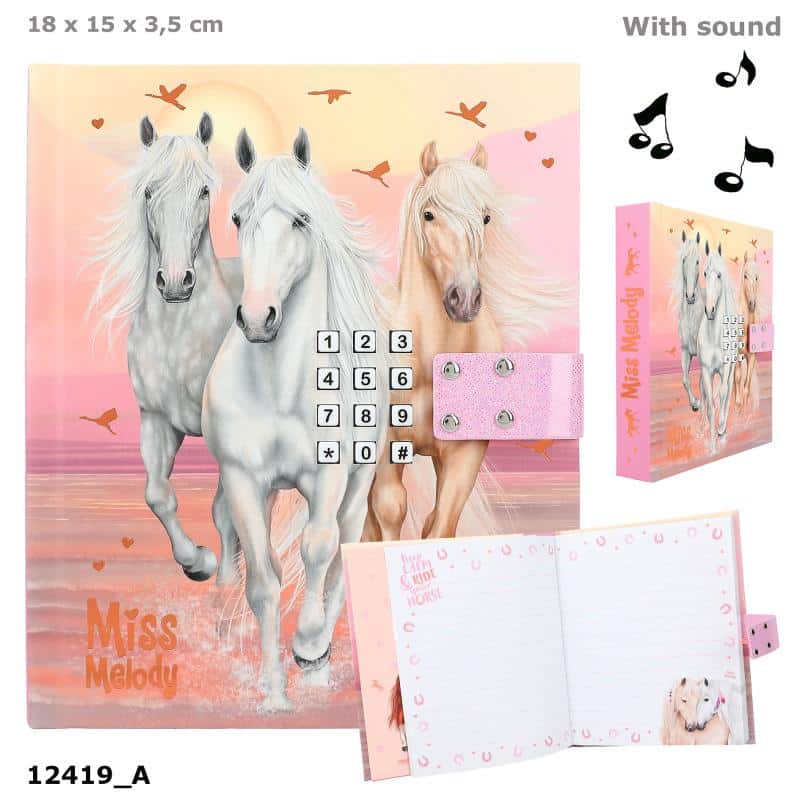 Ihana Melody Koodillinen & soiva päiväkirja SUNDOWN. Kaikki salaisuutesi ja haaveesi ovat turvassa tässä päiväkirjassa, jossa on koodilukitus. Koodin voit valita itse ja mikä parasta - kun avaat päiväkirjan, laulu alkaa soimaan! Ikäsuositus +5 vuotta