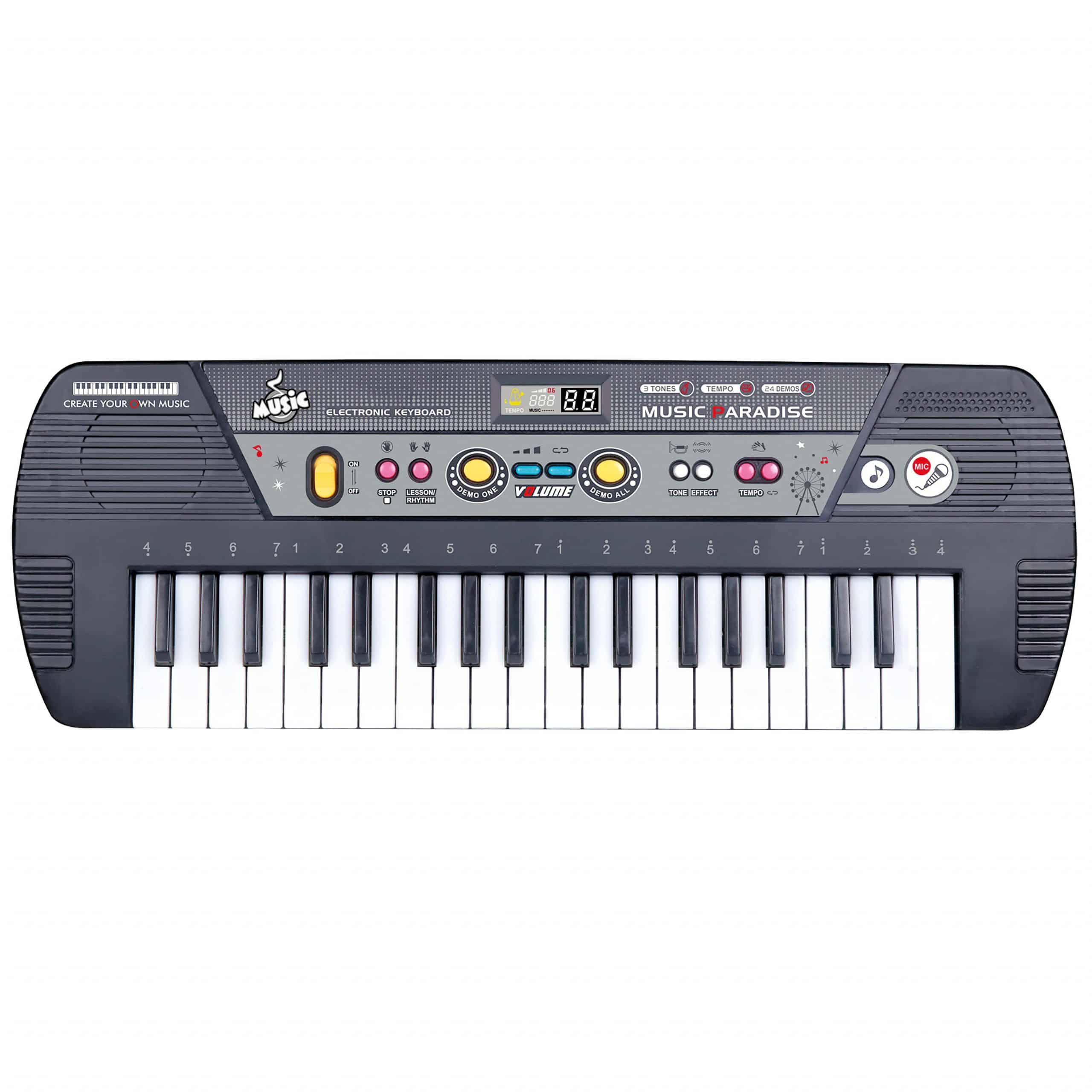 Elektroninen Kosketinsoitin mukaviin soittohetkiin. Pakkaus sisältää kosketinsoittimen, 24 erilaista demoa, 2 eri tempoa, 3 erilaista ääntä, rytmitoiminto.