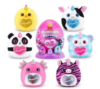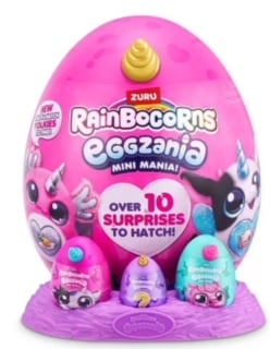 Oletko jo Tutustunut uuteen Rainbocorns Eggzania Mini Maniaan! Tämä muna sisältää yli 10 yllätystä ja upouusia hassuja, söpöjä Rainbocorns -hahmoja. Ota muna pesästä – sisältä löydät ihanan pehmeän ja halittavan Eggzania-hahmon! Kerättävänä on 6 Eggzania-eläintä, esimerkiksi aksolotli, lehmä ja apina. Jokaisen Eggzania-hahmon mukana tulee puettavia Eggzania-asusteita, tarroja, Rainbocorns-lima ja Boo-boocorn! Kerää kaikki erilaiset Eggzania puristeltavia Mini Mania -hahmoja on kuusi ja minimunia kuusi.