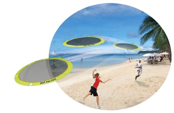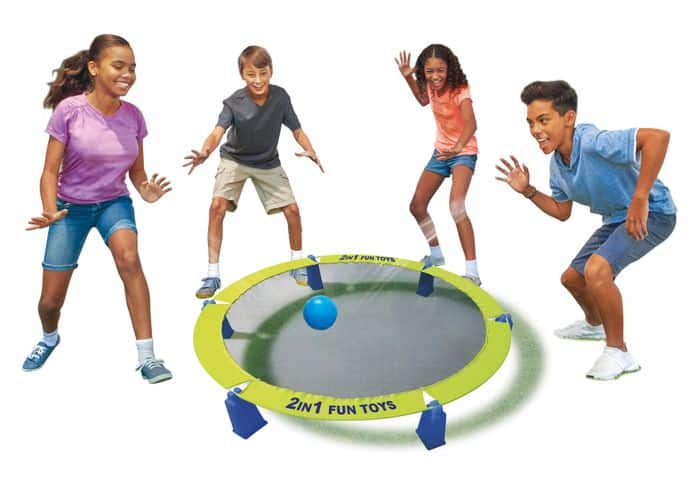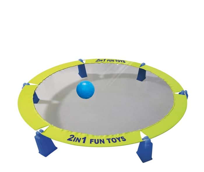 Uusi peli koko perheelle! Roundnet on nopeatempoinen joukkuepeli. Lyö pallo verkkoon ja koita ettei vastustaja onnistu vastaamaan lyöntiisi. Irroita verkko jaloista ja se toimii isona frisbeenä. Pakkaus sisältää peliverkon jalkoineen, kaksi palloa ja pallopumpun.